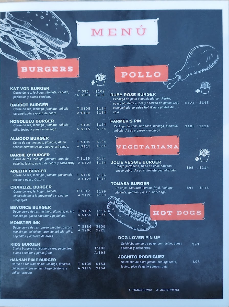 You’ll find a variety of flavorful burgers featuring fresh ingredients and distinctive touches, like the BBQ-spiced Barbie Q' Burger or the hearty Farmer’s Pin Up Burger. Alongside these, sides like crispy papas alioli and golden onion rings round out the experience. For those seeking lighter options, salads and vegan burgers are also thoughtfully included.